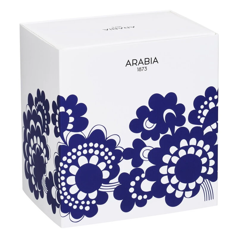 Le vase Esteri d’Arabia arbore un magnifique motif floral conçu en 1973 par Esteri Tomula en l’honneur du centenaire de l’usine. Du nom de son créateur, le motif Esteri ornait la vaisselle à l’origine en bleu et en brun. Ce motif bleu et blanc original ajoute une jolie touche de design finlandais des années 1970 au quotidien comme aux occasions spéciales.