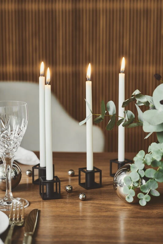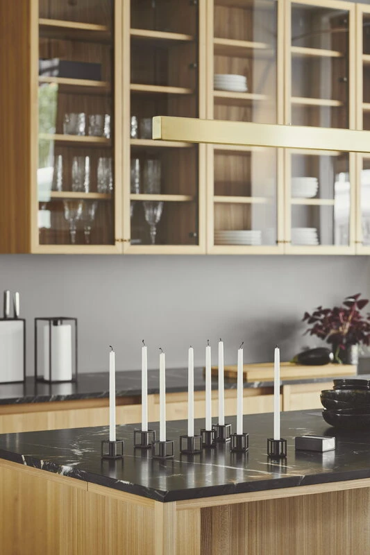 Le modèle Kubus Micro de By Lassen est une version miniature du bougeoir classique Kubus conçu par l’architecte et designer danois Mogens Lassen. Lors de la création du modèle original en 1962, Lassen s’est inspiré du mouvement Bauhaus, ce qui est visible dans le magnifique design géométrique du bougeoir. Kubus Micro adopte exactement la même géométrie, mais sa taille a été réduite de moitié par rapport à celle du bougeoir classique Kubus 1. Le lot comprend deux bougeoirs.