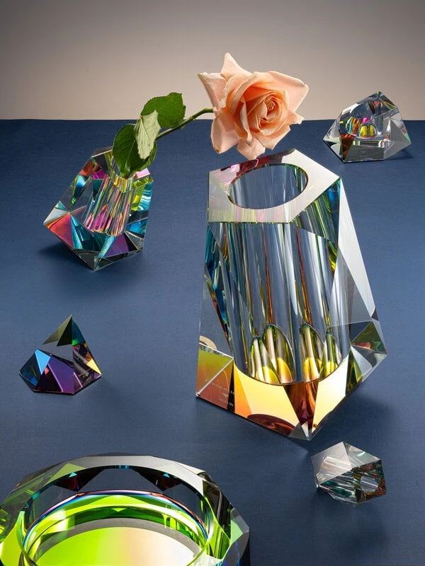 Le presse-papier Regenbogen de Fundamental Berlin captive l’œil avec sa surface brillante qui scintille de toutes les couleurs de l’arc-en-ciel lorsque la lumière l’atteint. Ce presse-papier est taillé à la main dans du verre cristal et recouvert d’un film chromatique spécial qui permet de mettre en valeur les couleurs du spectre. Ce presse-papiers lumineux permet d’organiser les documents, lettres, magazines et autres papiers importants dans le bureau, mais ajoute également une lueur élégante à votre intérieur lorsque vous l’utilisez comme élément décoratif unique et chatoyant.