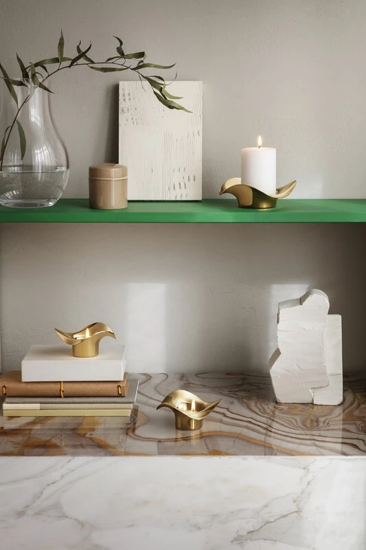 Le bougeoir Cobra de Georg Jensen attire l’attention grâce à sa surface métallique brillante de couleur dorée qui reflète la lueur des flammes de manière captivante. Les lignes organiques de ce bougeoir ressemblent à de la cire en fusion, comme si un chandelier classique avait commencé à fondre. Le bougeoir Cobra a été conçu pour être utilisé avec des bougies de table.