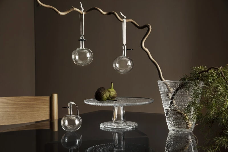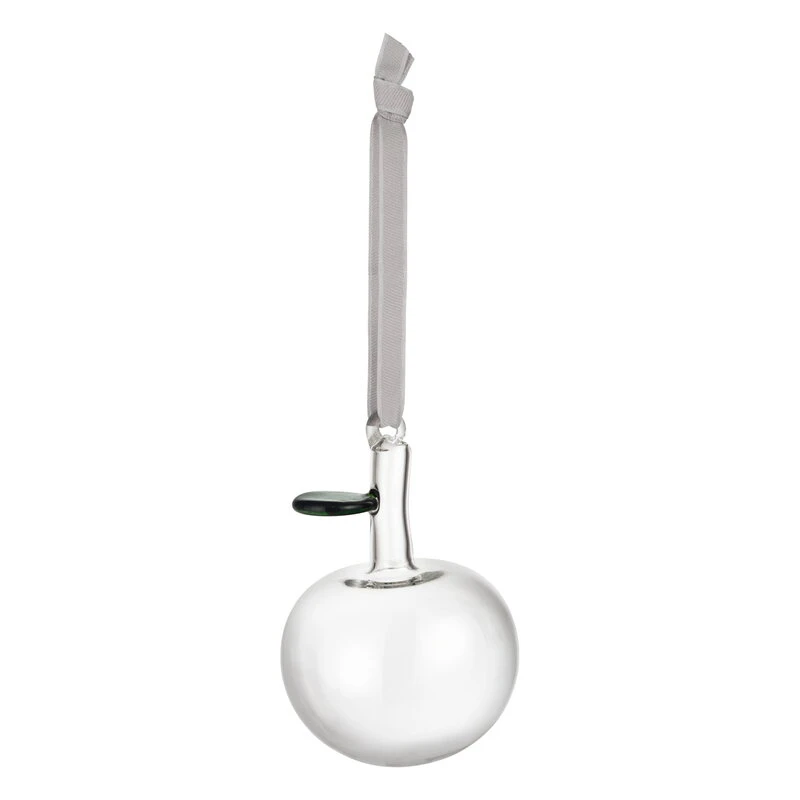 Les pommes en verre d’Iittala allient l’art moderne du verre aux anciennes traditions de Noël. Saviez-vous qu’avant l’arrivée des boules, le sapin de Noël était traditionnellement décoré de pommes ? Créés par l’artiste et designer Oiva Toikka, ces objets décoratifs fantaisistes sont accompagnés de petits rubans : ils sont donc idéaux pour un sapin ou une couronne. Les pommes décoratives sont en verre transparent et vendues par lot de trois.