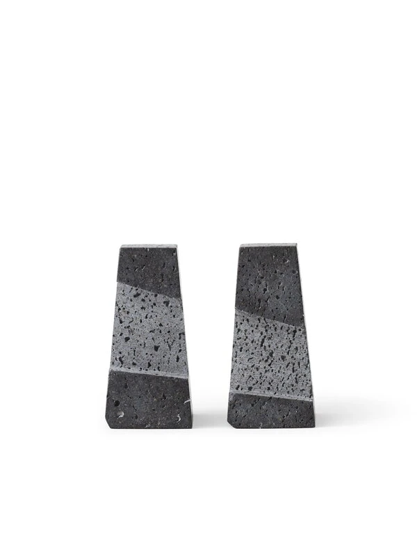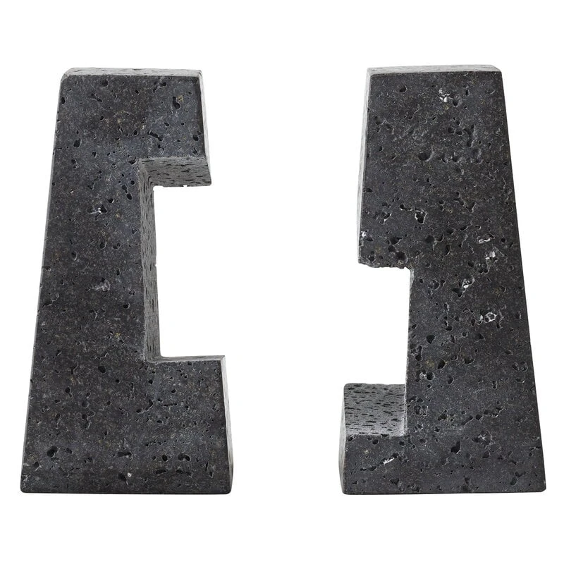 Le serre-livres Converge de Menu est fait de pierre de lave avec une surface sombre et irrégulière qui ajoute une texture unique au bel objet décoratif. Le serre-livres se compose de deux parties abstraites qui peuvent être utilisées dans le but initial de soutenir les livres de part et d’autre de l’étagère, ou qui peuvent être réunies pour créer une sculpture originale et remarquable sur une table basse, une étagère ou un rebord de fenêtre.