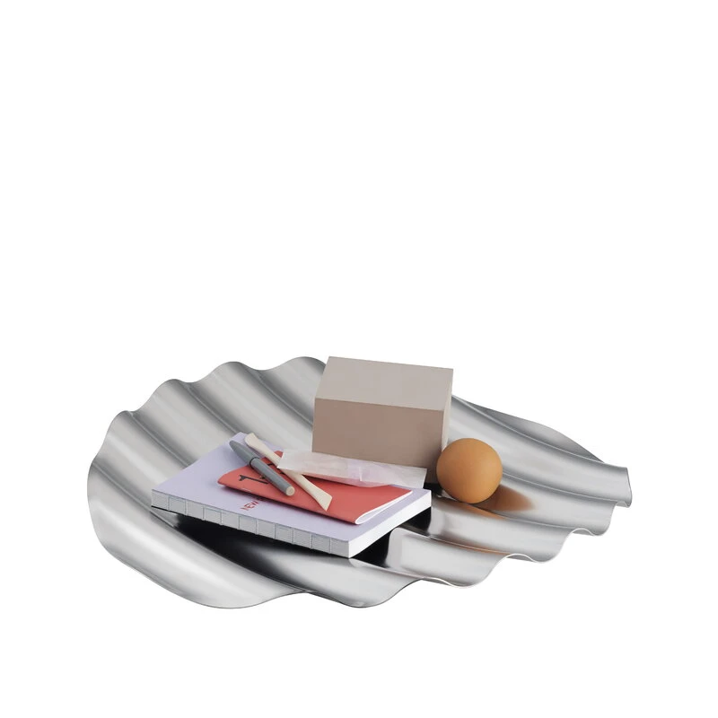 Le plateau Wave de Muuto doit son nom de son aspect semblable aux ondulations d’une vague. Fabriqué en acier inoxydable, le grand plateau Wave offre un support sculptural et distinctif pour accueillir les petits objets et les ornements. Il peut également être utilisé comme coupe à fruits moderne. L’élégance graphique du plateau Wave a été créée par le bureau milanais CARA DAVIDE.