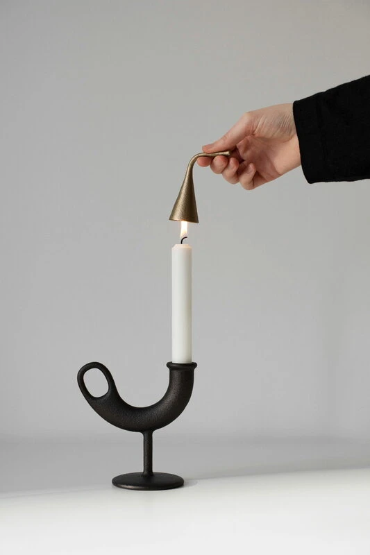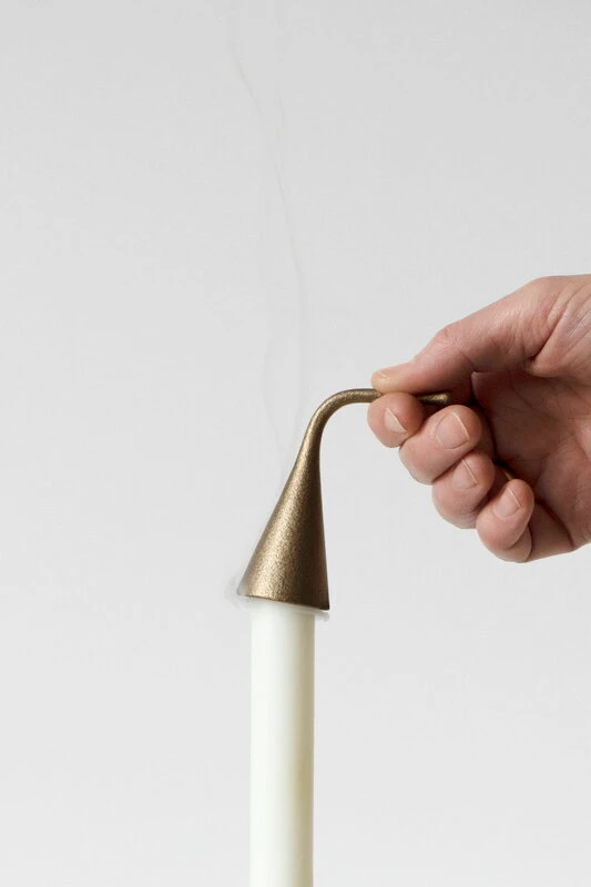 L’éteignoir à bougies Sammu se marie parfaitement avec le bougeoir Ildhane de Nedre Foss, également conçu par Julie et Mika Tolvanen. Avec le temps, la surface en laiton de Sammu développera une patine sophistiquée et animée. Ou si vous préférez, vous pouvez prolonger l’éclat du laiton en polissant régulièrement la surface.