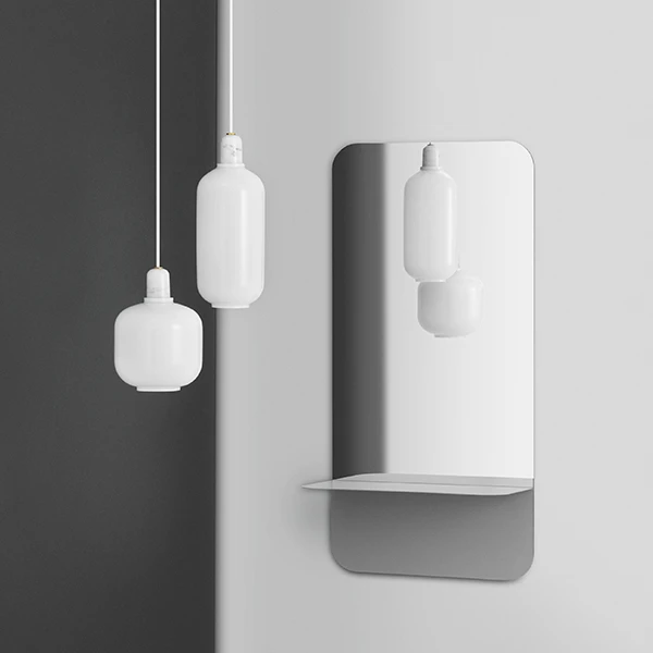 Les miroirs Horizon de Normann Copenhagen créent une illusion d’optique amusante. C’est comme si leurs fines étagères en acier avaient un vrai jumeau. Conçus par KaschKasch, les réflecteurs géométriques simples marient de manière charmante esthétique et fonctionnalité. Les miroirs Horizon et leurs étagères pratiques agrémenteront à la perfection tout couloir ou dressing.