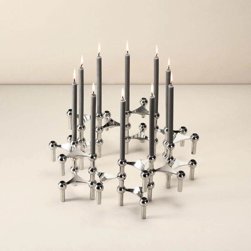 La marque danoise STOFF Copenhagen a réédité le bougeoir élégant STOFF Nagel conçu par l’architecte Werner Stoff pour le métallurgiste Hans Nagel dans les années 1960. Nagel a eu l’idée de ce bougeoir après être tombé dans la neige lors d’un séjour au ski dans les Alpes. Les trois trous formés par ses doigts dans la neige ont ensuite donné la forme triangulaire de STOFF Nagel. Ces bougeoirs modulaires peuvent être combinés pour former de magnifiques constructions sculpturales qui attireront l’attention avec ou sans bougies.