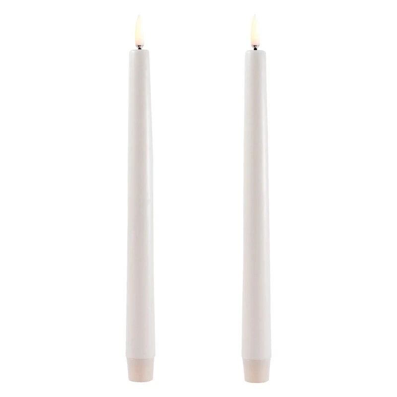 Les bougies coniques LED d’Uyuni Lighting sont un moyen sûr de créer une atmosphère chaleureuse et accueillante dans votre maison, comme celle que l’on ne peut obtenir qu’avec le doux scintillement d’une bougie allumée. Les bougies LED sont plus vraies que nature : elles sont recouvertes de véritable cire de bougie et équipées de la flamme 3D brevetée d’Uyuni qui imite le scintillement d’une bougie classique et brille doucement dans un ton blanc chaud.